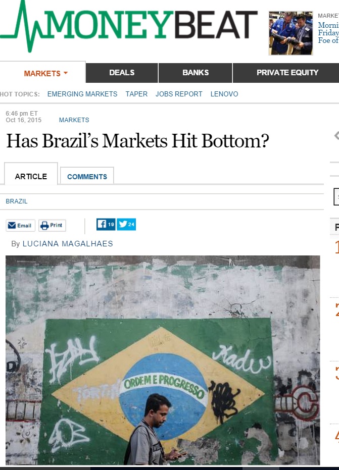 Mas a avaliação publicada pelo jornal norte-americano de economia “The Wall Street Journal'' pode ser uma boa notícia para o país: “Agora é a hora de realmente olhar para o Brasil'', disse Mobius, que é diretor do grupo Templeton Emerging Markets.