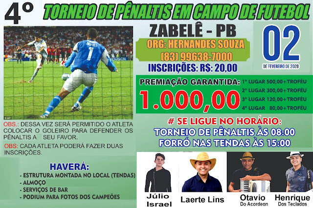 O organizador e realizador do evento, Hernandes de Zabelê-PB, acredita que a premiação deverá chegar próximo aos 40.000,00, uma vez que o valor da premiação é de acordo com o número de inscritos.
